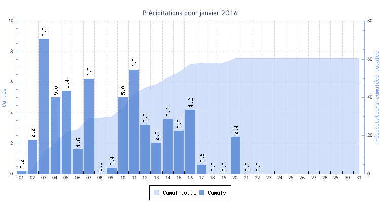 | 16 | -1.9 °C | 3.1 °C | 0.4 °C | 0.7 km/h (20.9 km/h) | SE |